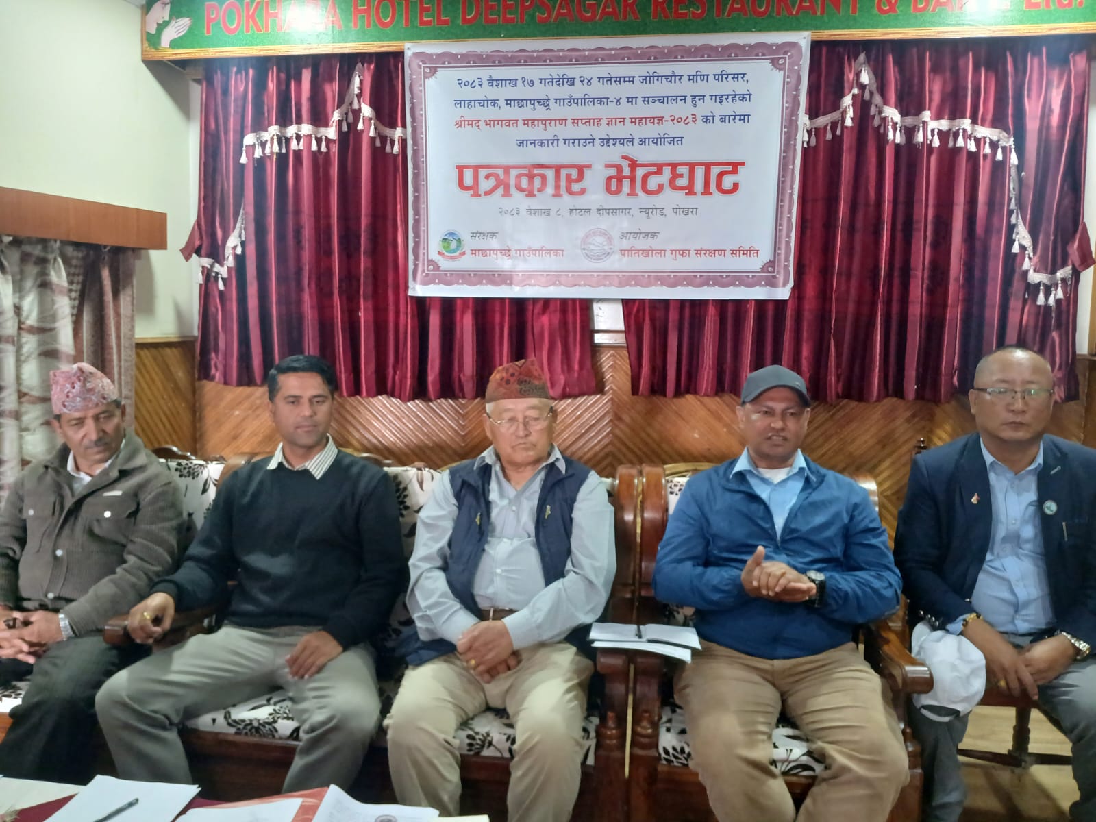 कास्कीको माछापुच्छ्रे गाउँपालिका वडा नं. ४ र ५ को सिमाना पातिखोलामा श्रीमद् भागवत महापुराण सप्ताह ज्ञान महायज्ञ–२०८३ हुने भएको छ पातिखोला गुफा संरक्षण समितिको आयोजना, माछापुच्छ्रे गाउँपालिकाको संरक्षकत्व तथा यस स्थानमा रहेका आम समूह, टोल सुधार समिति, क्लब तथा विभिन्न सामाजिक सङ्घ–संस्थाहरूको सहकार्यमा वैशाख १७ देखि २४ गते सम्म वडा नंं ४ को जोगिचौर मणि परिसरमा महायज्ञ हुन लागेको मङ्गलवार आयोजित पत्रकार सम्मेलनमा जानकारी दिइयो ।